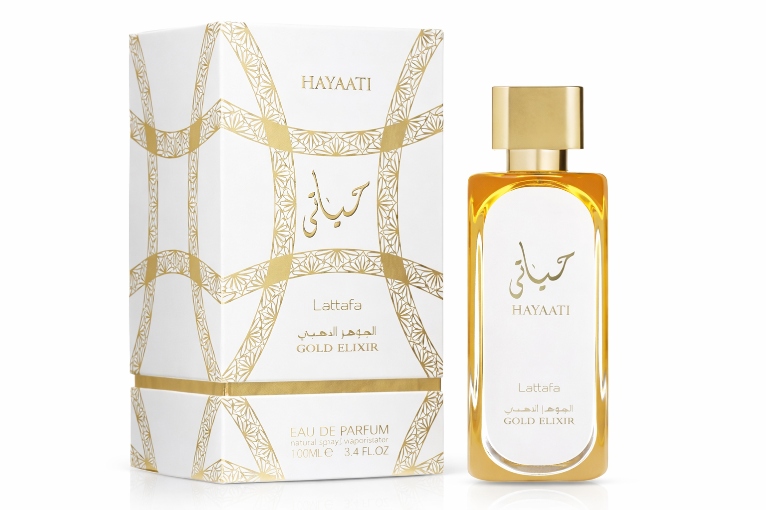 Hayaati Gold Elixir de Lattafa Perfumes es una fragancia de la familia olfativa para Hombres